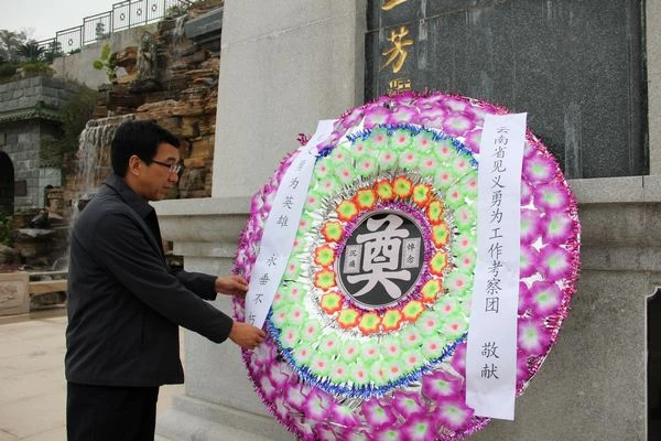 3月15日,省综治办专职副主任、省见义勇为基金会副会长兼秘书长胡吉安向福建见义勇为纪念碑敬献花圈。