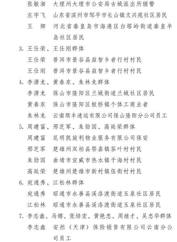 附件:2024—2025年云南省见义勇为群(集)体和个人名单